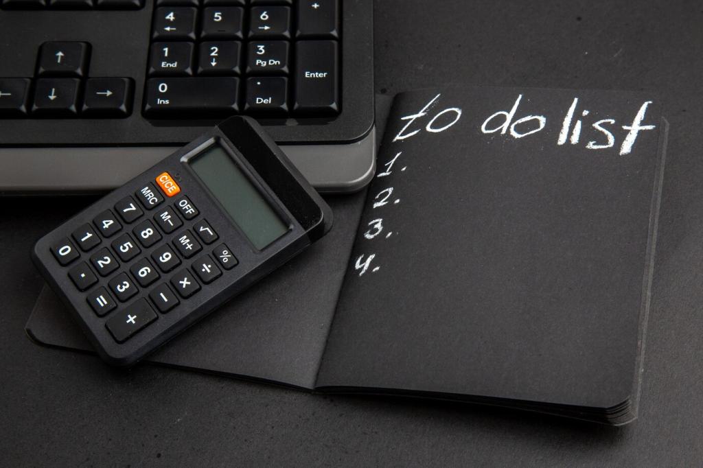 Block fifteen minutes every Monday to review balances, upcoming bills, and top priorities. Keep it lightweight, repeatable, and forgiving, so a missed week doesn’t derail your momentum or confidence.